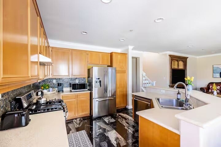 Unwind in this spacious two-story 4BR/3BA home with modern finishes, dedicated office, high-speed Wi-Fi, and Tesla charger. Nestled in a safe, green community near hospitals, parks, and local attractions, Blue Zone is ideal for digital nomads, traveling professionals, and families seeking a healthy balance of work and relaxation.